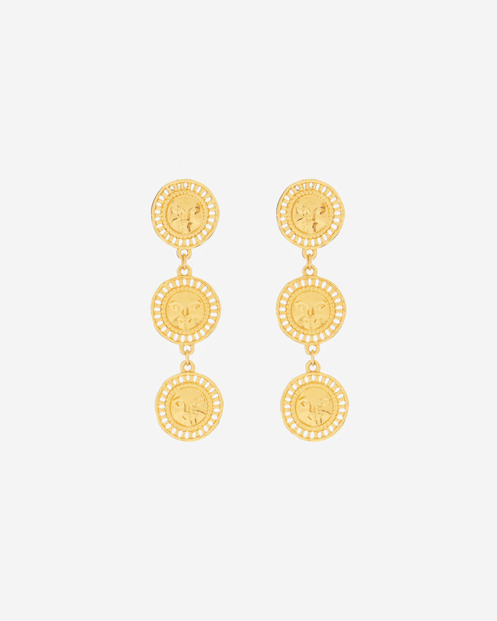 - Aretes elaborados Zamak (aleación de metales) con baño de oro de 24k.
