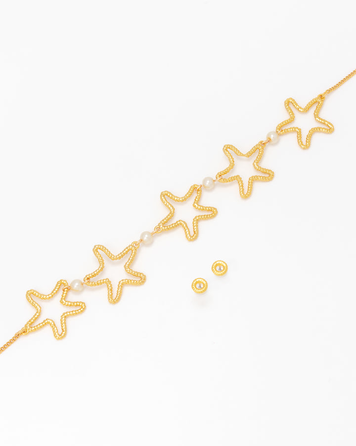 - Dijes del collar en Zamak (aleación de metales) con baño de oro de 24k.