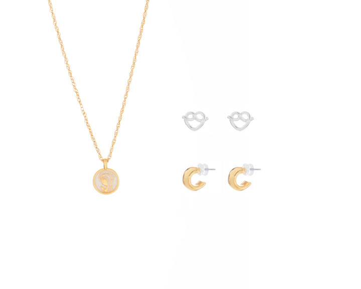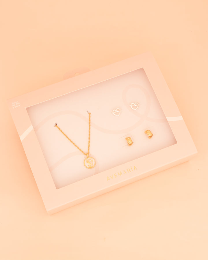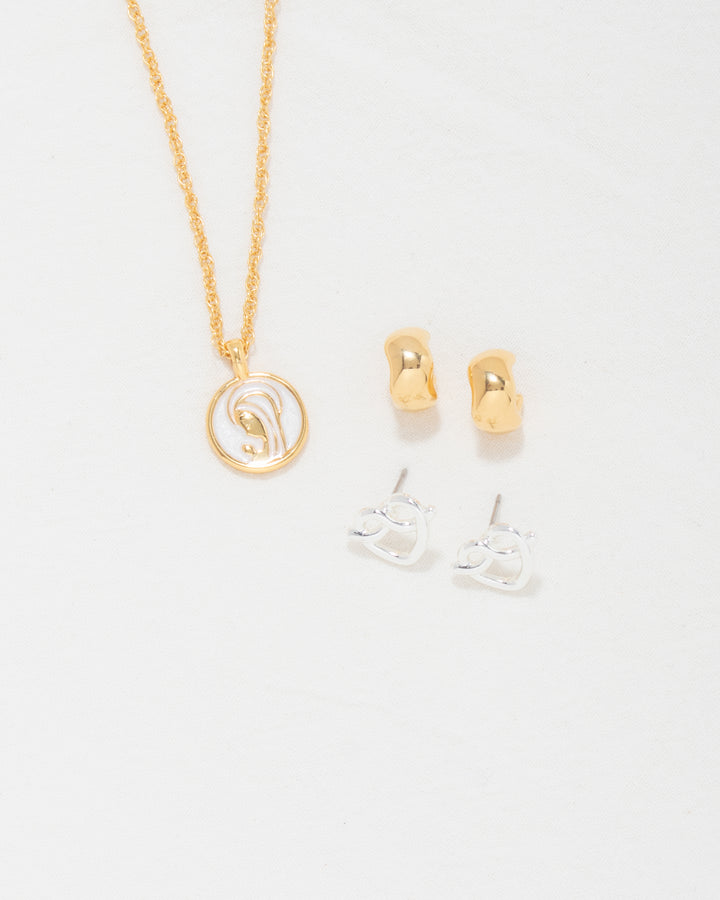 Kit x 2 Aretes 1 Collar Virgen Nacar