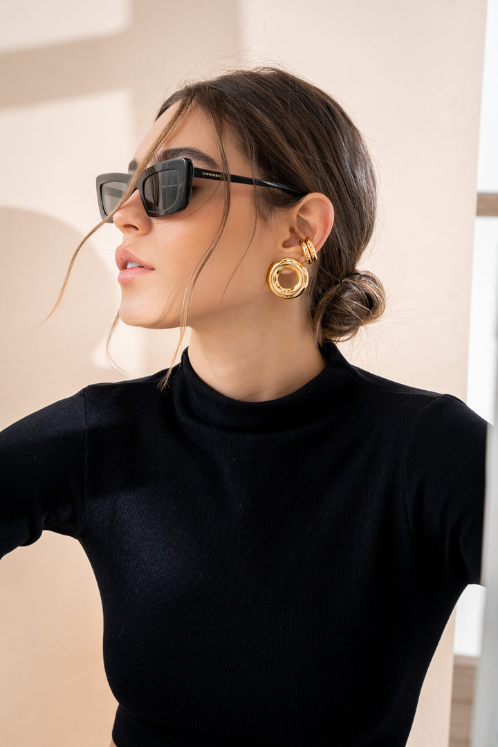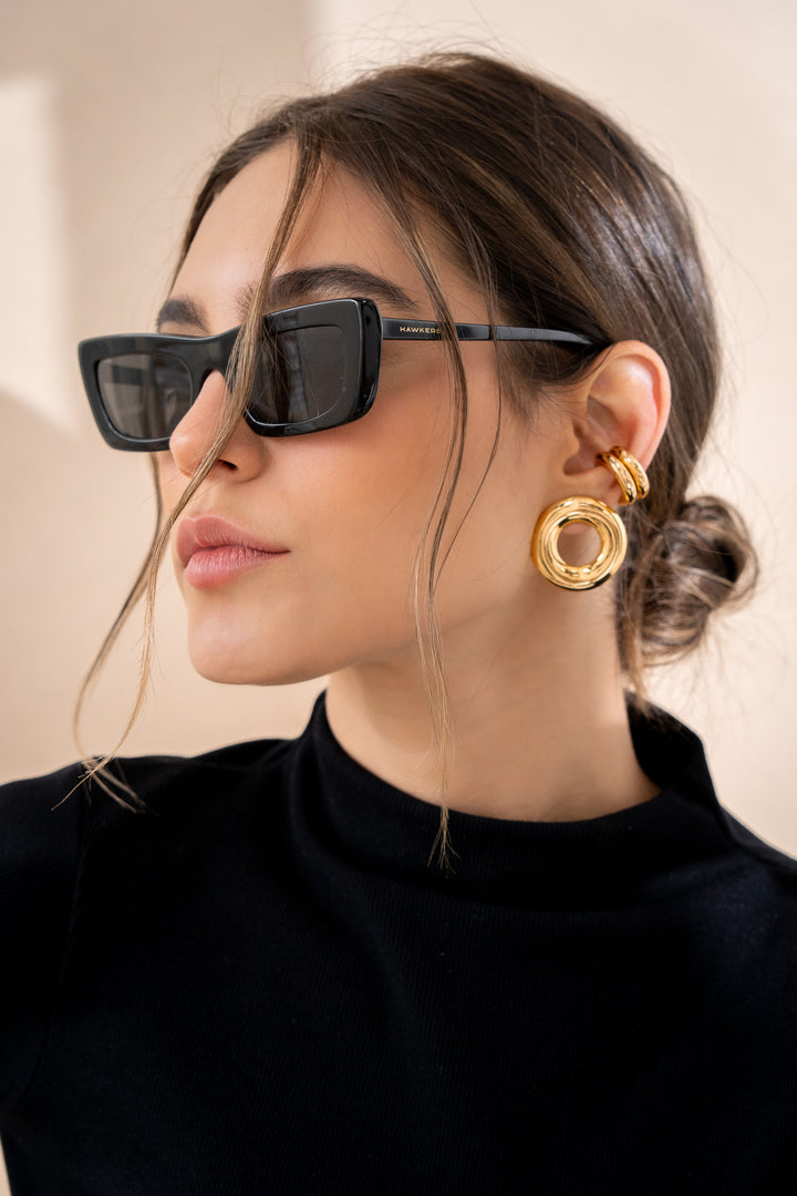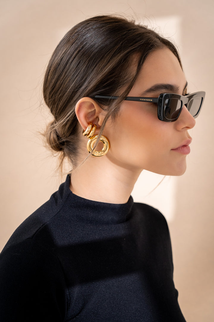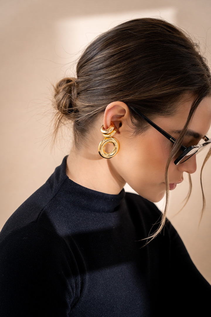 - Aretes elaborados Zamak (aleación de metales) con baño de oro de 24k.